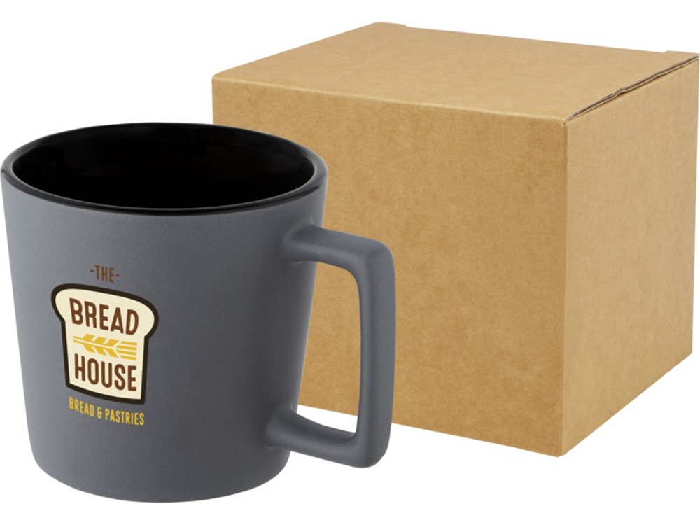 Керамическая кружка с современным дизайном и матовой отделкой. Объем 370 мл. Можно мыть в посудомоечной машине. Поставляется в упаковочной коробке из переработанного картона. Керамика.