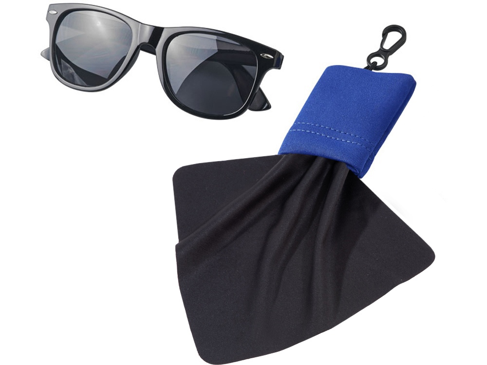 Очищающая салфетка Clear из микрофибры в чехле. Очищающая салфетка из микрофибры для протирания очков, мобильных телефонов, экранов компьютеров и многого другого. Упакована в чехол с карабином для удобной переноски. Ультратонкая микрофибра. 0,010.