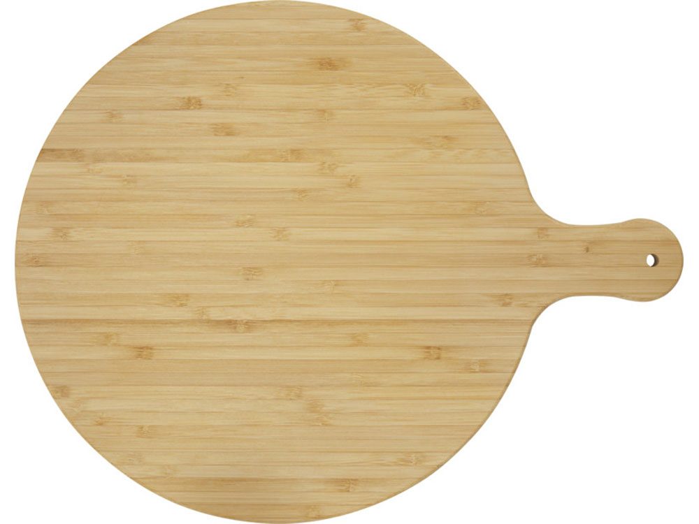 Разделочная доска Delys изготовлена из бамбука и идеально подходит для частных лиц и предприятий, которые предпочитают более экологичные товары. Диаметр доски: 30,5 см. Длина ручки: 8 см. Толщина доски: 1,4 см. Не подходит для микроволновой печи или посудомоечной машины.