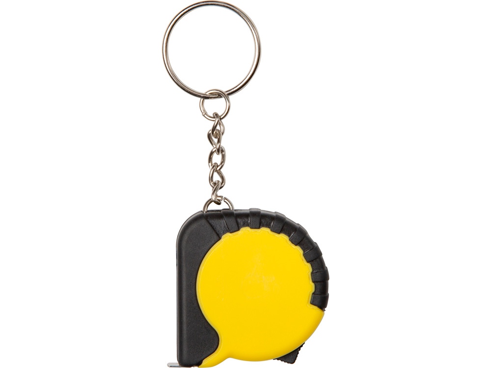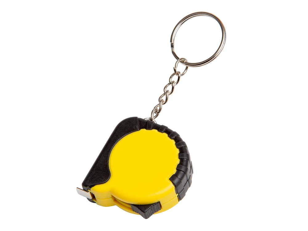 Рулетка длиной 1 м с возвратной пружиной и стопором со шкалой в сантиметрах и дюймах. Кнопка для фиксации ленты.