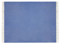 Большой размер этого мягкого плотного пледа позволяет использовать его как одеяло и как покрывало для вашего интерьера. По бокам плед украшен бахромой. В комплекте идет упаковочная синяя лента, на которой можно сделать нанесение вашего логотипа.