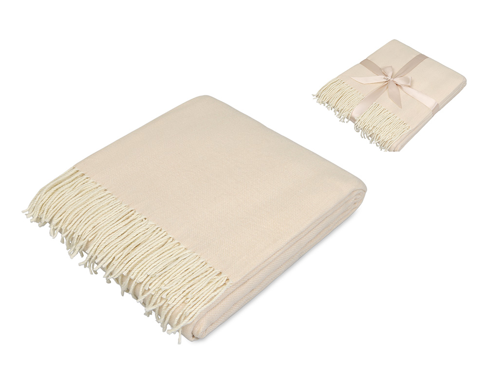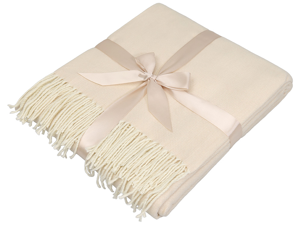 Большой размер этого мягкого плотного пледа позволяет использовать его как одеяло и как покрывало, украшающее интерьер. По бокам плед украшен бахромой. В комплекте идет упаковочная бежевая лента, на которой можно сделать нанесение.