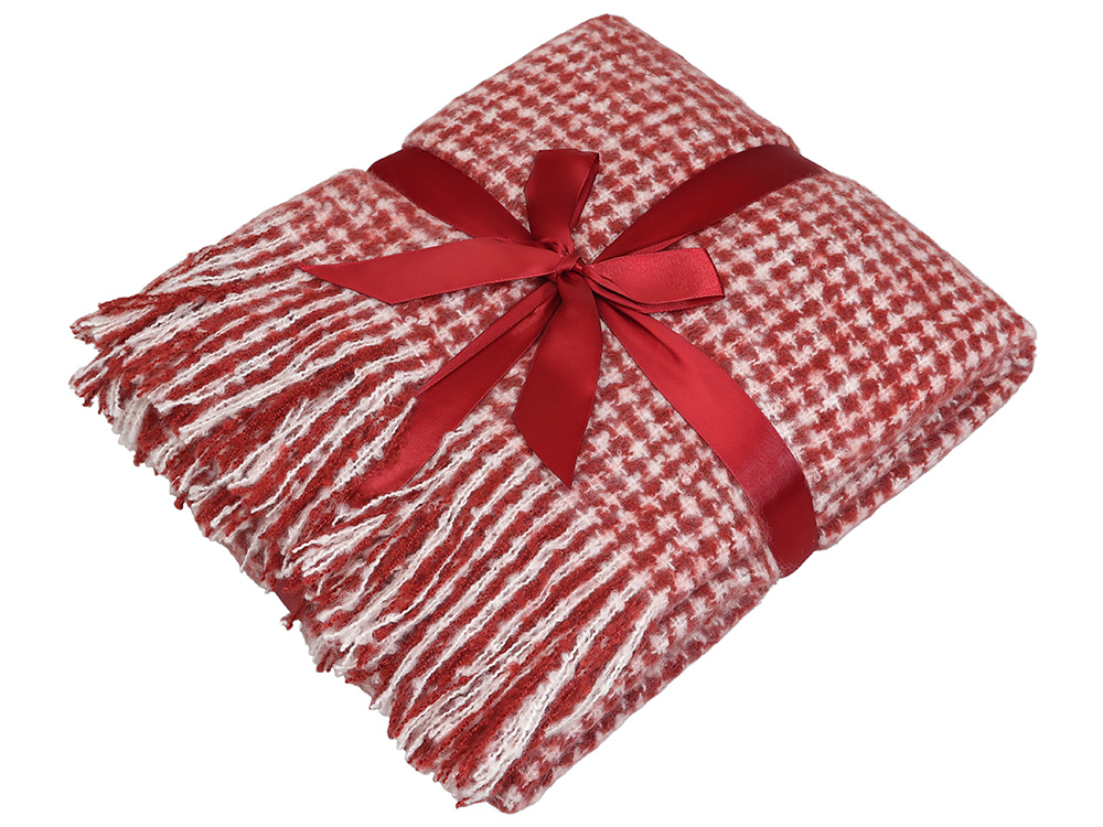 Супер мягкий и теплый плед согреет в холодный день и украсит ваш интерьер. По бокам плед украшен бахромой. В комплекте бордовая лента, на которой можно нанести ваш логотип.