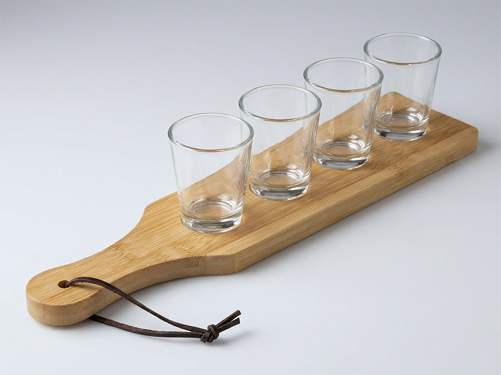 Брендирование стопок деколью или гравировкой сделает набор прекрасным подарком.