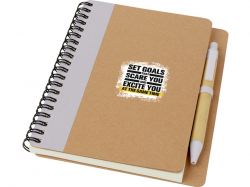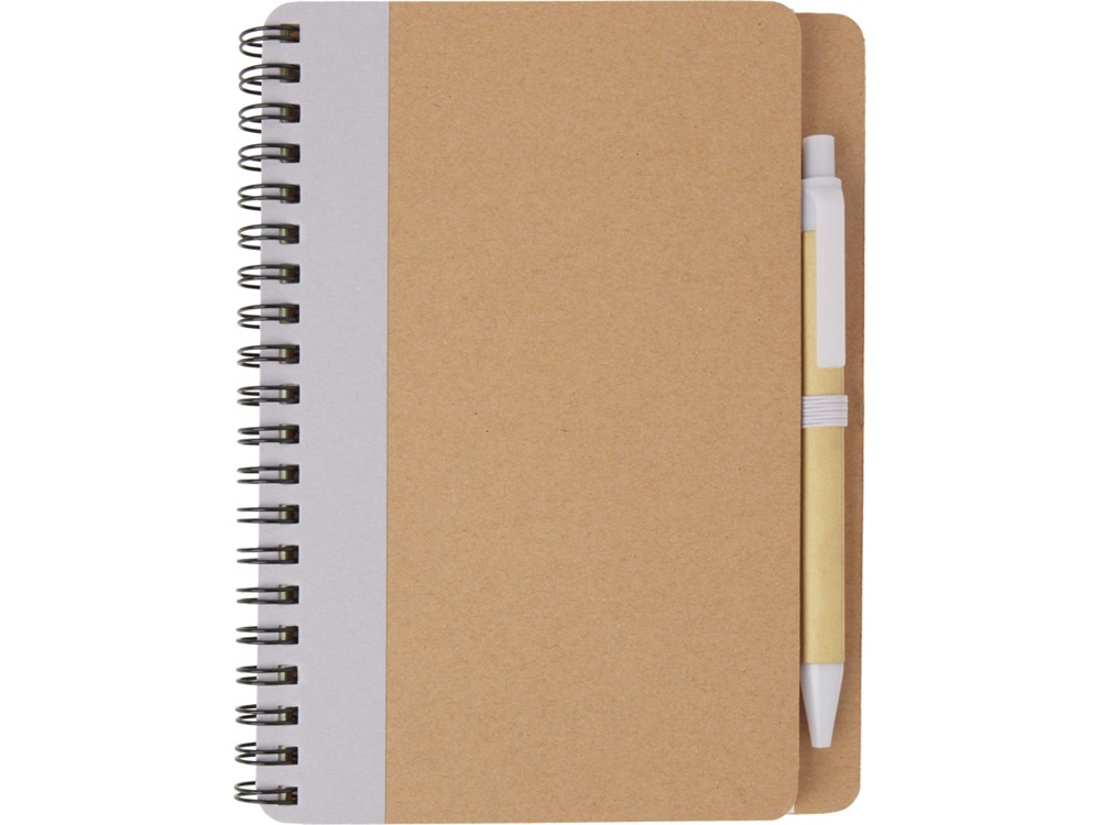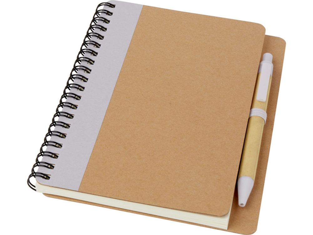 Записная книжка с обложкой из переработанной бумаги. 60 линованных листов, переработанная бумага формата А6, ручка в комплекте. Переработанная бумага.