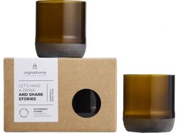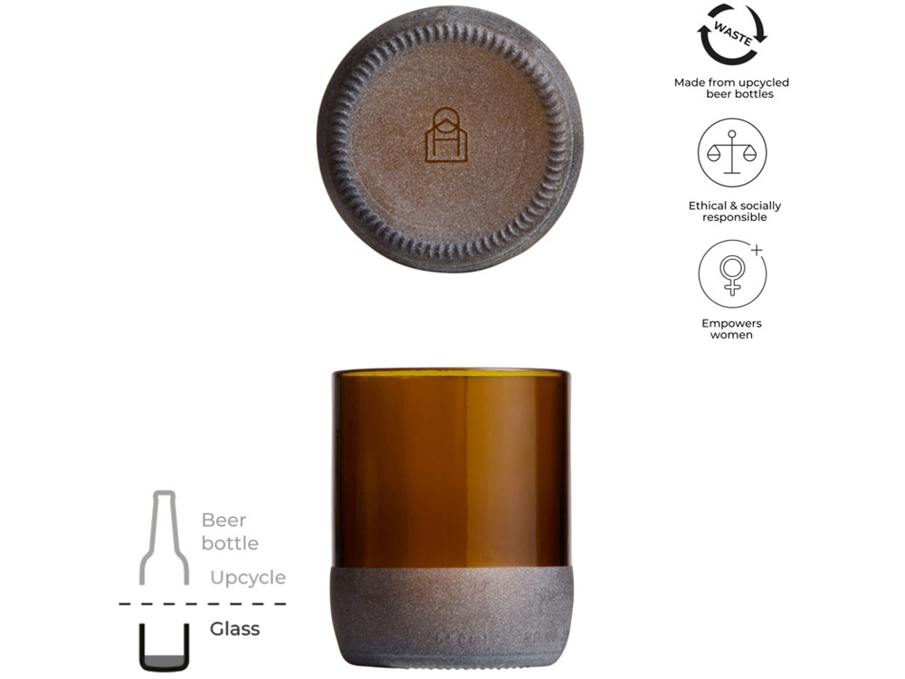 Набор из двух бокалов емкостью 160 мл, изготовленных из переработанных пивных бутылок. Поставляется в подарочной коробке. Переработанное стекло.