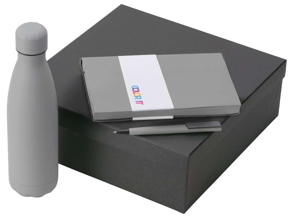 Подарочный набор c блокнотом C1, ручкой и термобутылкой, серый