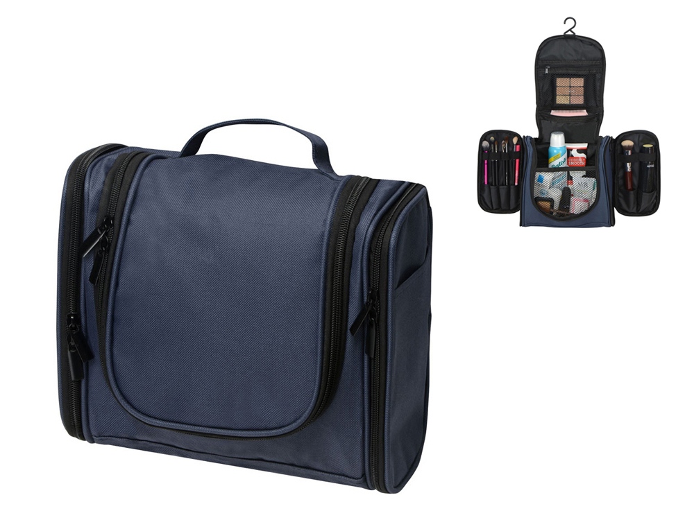 Несессер для путешествий. Эргономичный и вместительный, имеет внутренние и внешние карманы и большое отделение внутри. Оснащён ручкой для переноски и крючком для подвешивания. Нейтральный лаконичный дизайн позволяет преподнести несессер как мужчине, так и женщине;