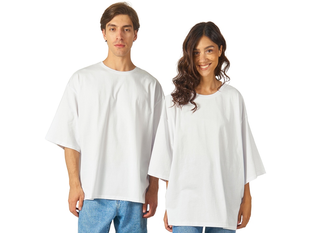 Футболка из плотного хлопкового джерси расширенного силуэта прекрасно подойдёт в качестве фирменной формы без строгого дресс-кода.