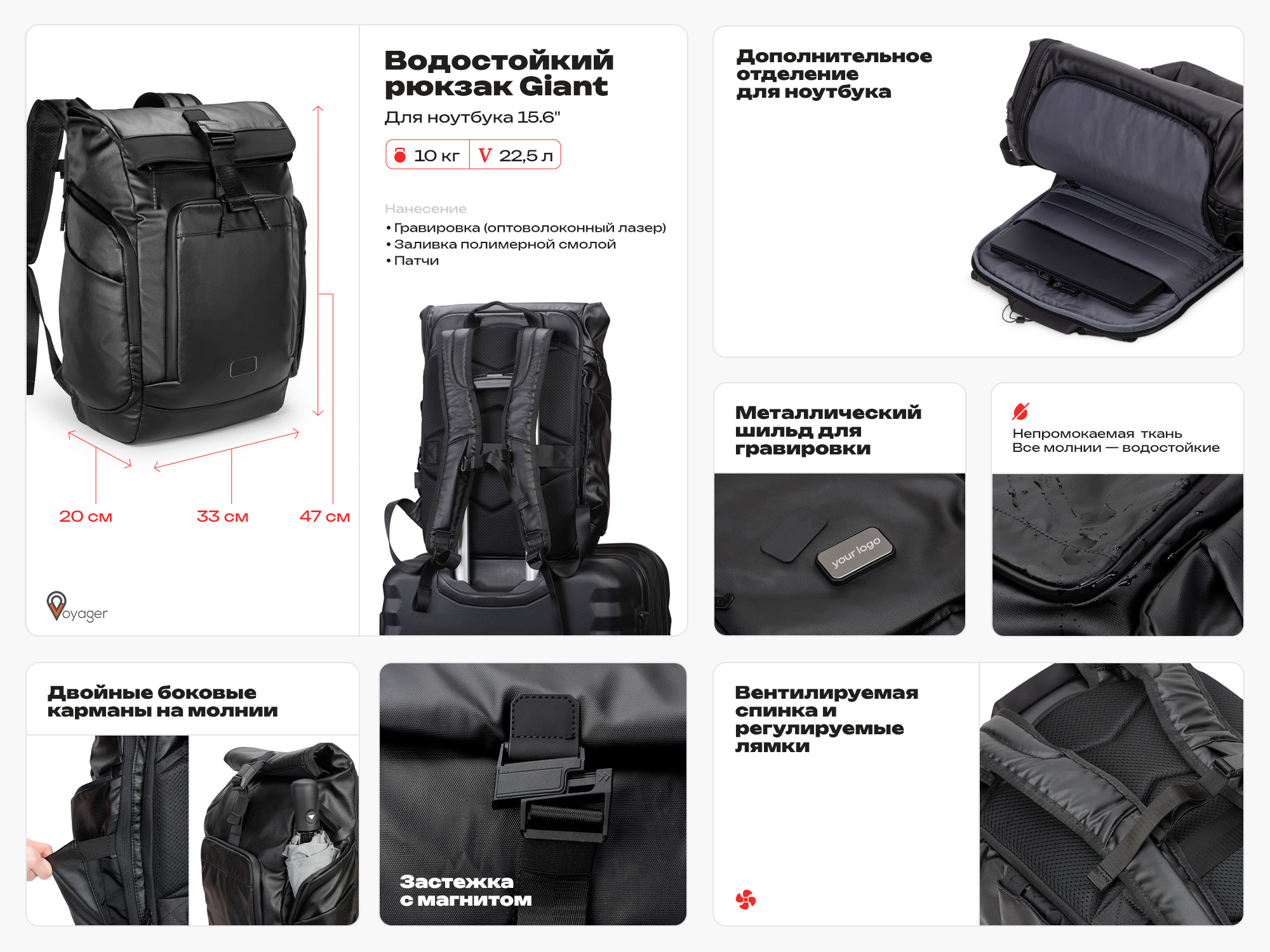 В качестве брендированного корпоративного подарка, который можно использовать в течение всего года, мы предложили набор из рюкзака, фонарика, термокружки и беспроводного зарядного устройства. Эти сувениры с логотипом отражают сферу деятельности группы компаний и будут полезны всем, кто ведет активную бизнес-деятельность.