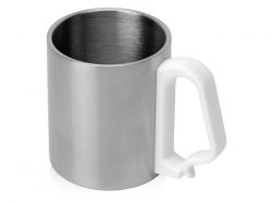 Стальная кружка с двойными стенками имеет удобную пластиковая ручка эргономичной формы, с помощью которой кружка легко закрепляется на походном рюкзаке или поясе.