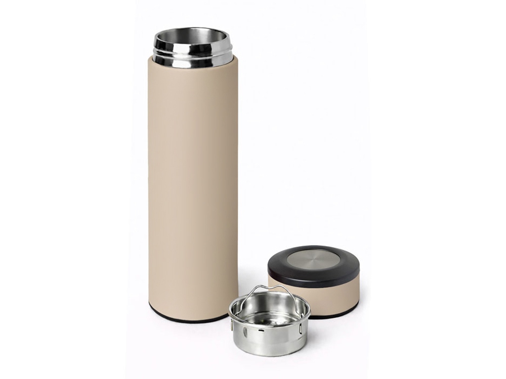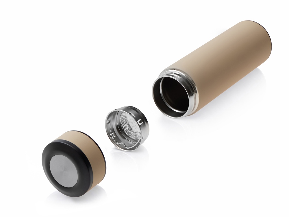 Термос "Confident" выполнен в сдержанном классическом дизайне. Подойдет как для официальных мероприятий, так и для повседневного использования. Благодаря покрытию soft-touch удобно и надежно лежит в руке. Имеется съемное ситечко. На корпус можно нанести изображение методом лазерной гравировки или УФ-печати. Также лазерная гравировка возможна и на крышке.