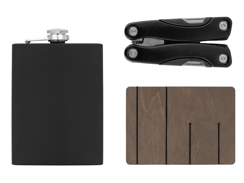 Набор с мультитулом и фляжкой "Путешественник 2.0.", черный