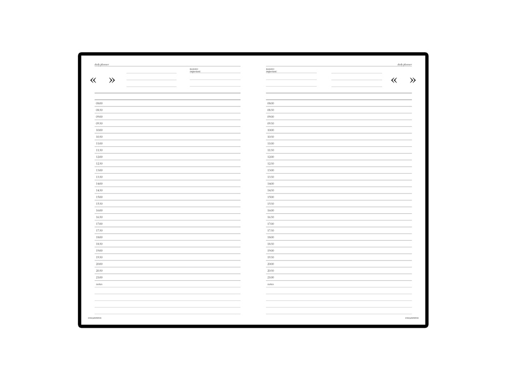 В нем есть полезная справочная информация и телефонная книга, а также 256 страницы для записи идей, мыслей и составления рабочих планов. Высококачественная бумага плотностью 55 г/кв м. Удобная разметка страниц позволяет осуществлять планирование с интервалом в полчаса. В верхней части страницы выделено поле для указания текущей даты.