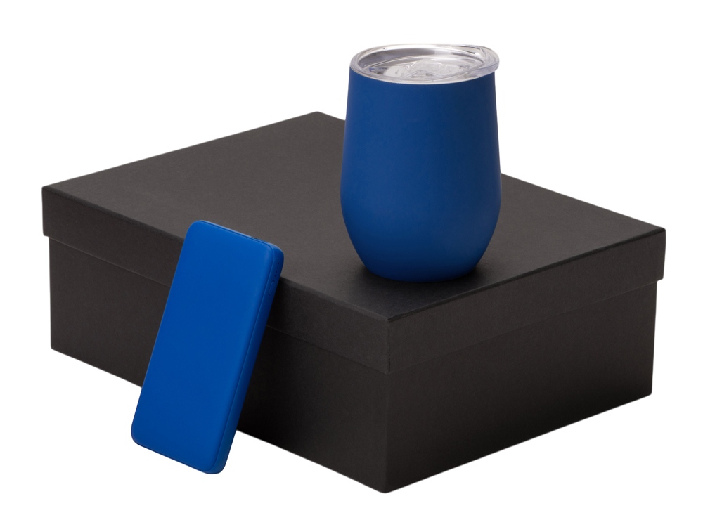 Подарочный набор с термокружкой и повербанком С2, 10000 mAh, синий