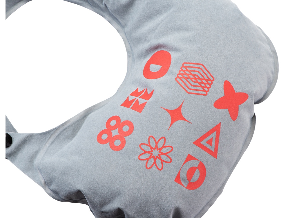 На обратной стороне от насоса-помпы находится клапан для сдувания воздуха из подушки. Двухуровневая фиксация кнопками позволит выбрать наиболее комфортное положение на шее. В комплекте идет чехол на завязках для хранения и удобной транспортировки.