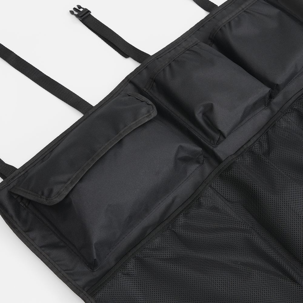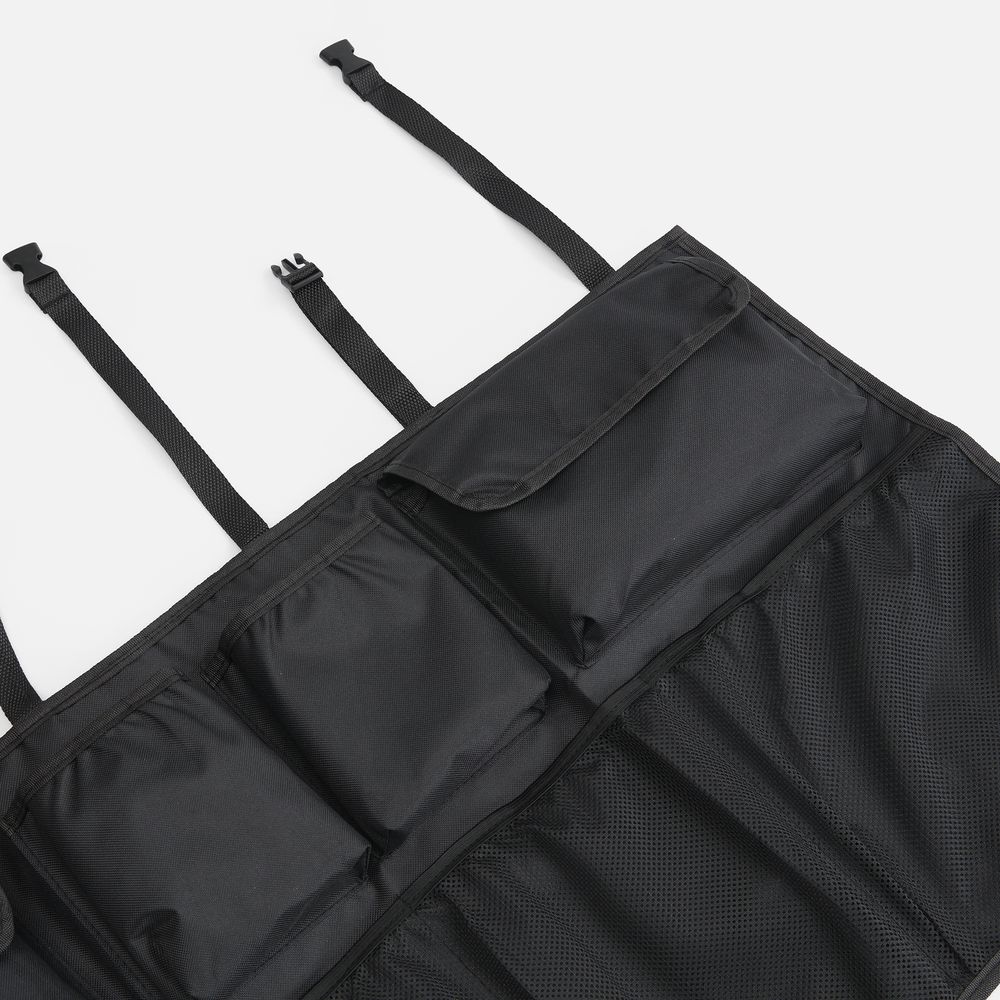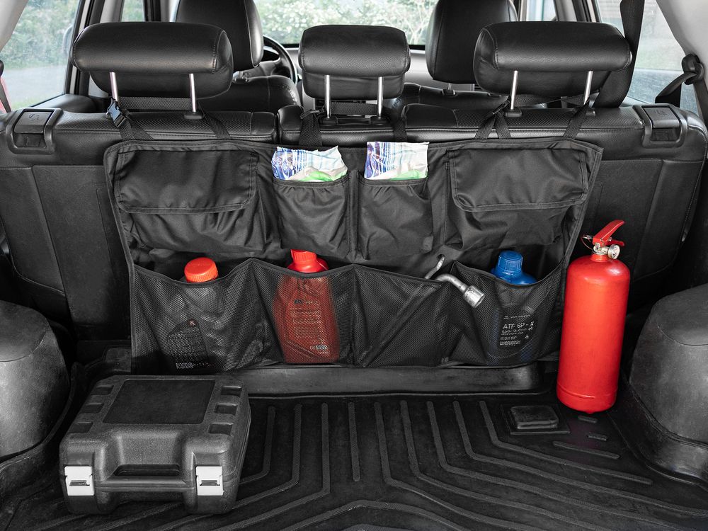 Органайзер Ordinare поможет навести порядок в багажнике, освободить место в салоне и избавиться от вечно катающихся в машине предметов. В органайзере имеются разные по форме и типу карманы: карманы-сетки, карманы с крышкой на липучке и открытые карманы. Конструкция крепится ремнями за подголовники задних сидений. Дополнительно на его задней части имеются ленты-липучки, которые обеспечивают полное прилегание к спинкам задних кресел.Подходит для автомобилей типа универсал, хэтчбэк и кроссовер.