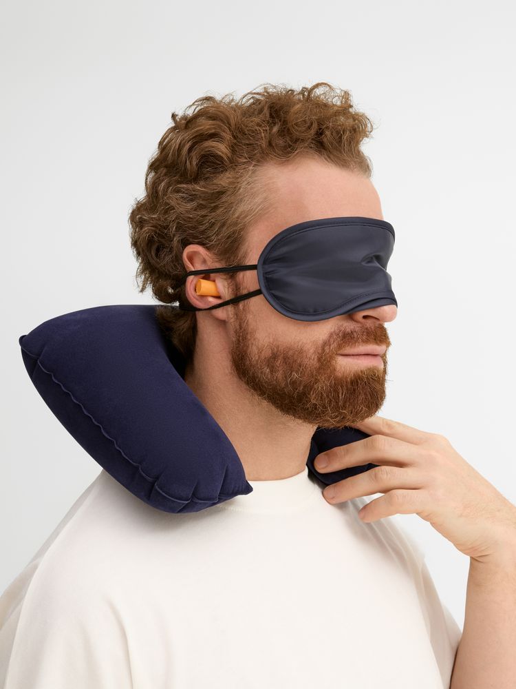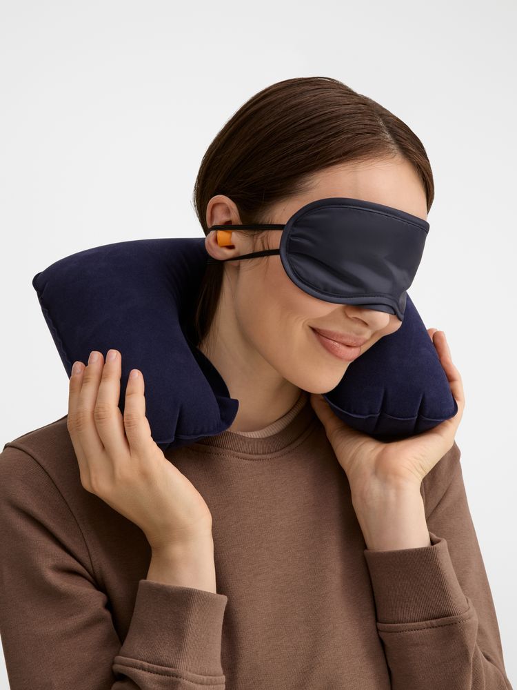 В комплекте: надувная подушка под шею (поставляется в сдутом виде)берушиповязка на глазачехол