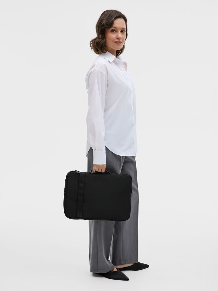 Сумка для ноутбука Crosshub — это пример стильного и функционального корпоративного подарка. Обеспечивает надежное хранение и транспортировку ноутбука, а также имеет дополнительные отделения для аксессуаров и документов, что делает ее максимально удобной в использовании.Вес 500 гОбъем 3,5 лОсновное отделение обеспечивают сохранность ноутбука благодаря жесткости стенок и внутренней подкладке из микрофибрыВторое отделение для документов с панелью-органайзеромДва внешних передних кармана на молнииРучка для переноскиКрепится на ручку чемоданаСтильная фурнитура из металла и отделка из экокожи
