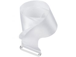 Благодаря прозрачной пряжке из пластика лента не требует сшивания и легко крепится на медаль.