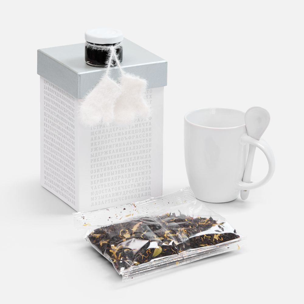 Для того, чтобы достичь цели, не обойтись без мечты, удачи и упорства, — на это может настроить особенный набор Wish Generator! Ведь все эти важные слова поддержки — и множество других приятных пожеланий — спрятаны на подарочной коробке! Отыщите наиболее подходящее случаю сочетание и обведите на память. А собирать самые теплые пожелания будет особенно приятно за чашечкой ароматного чая со сладкими угощениями.В комплект входят: Черный чай «Таежный сбор»;Джем Best Berries, черника;Подвеска на елку «Вьюжка», варежки, белая;Кружка с ложкой. Набор упакован в картонную коробку белого-серебристого цвета.