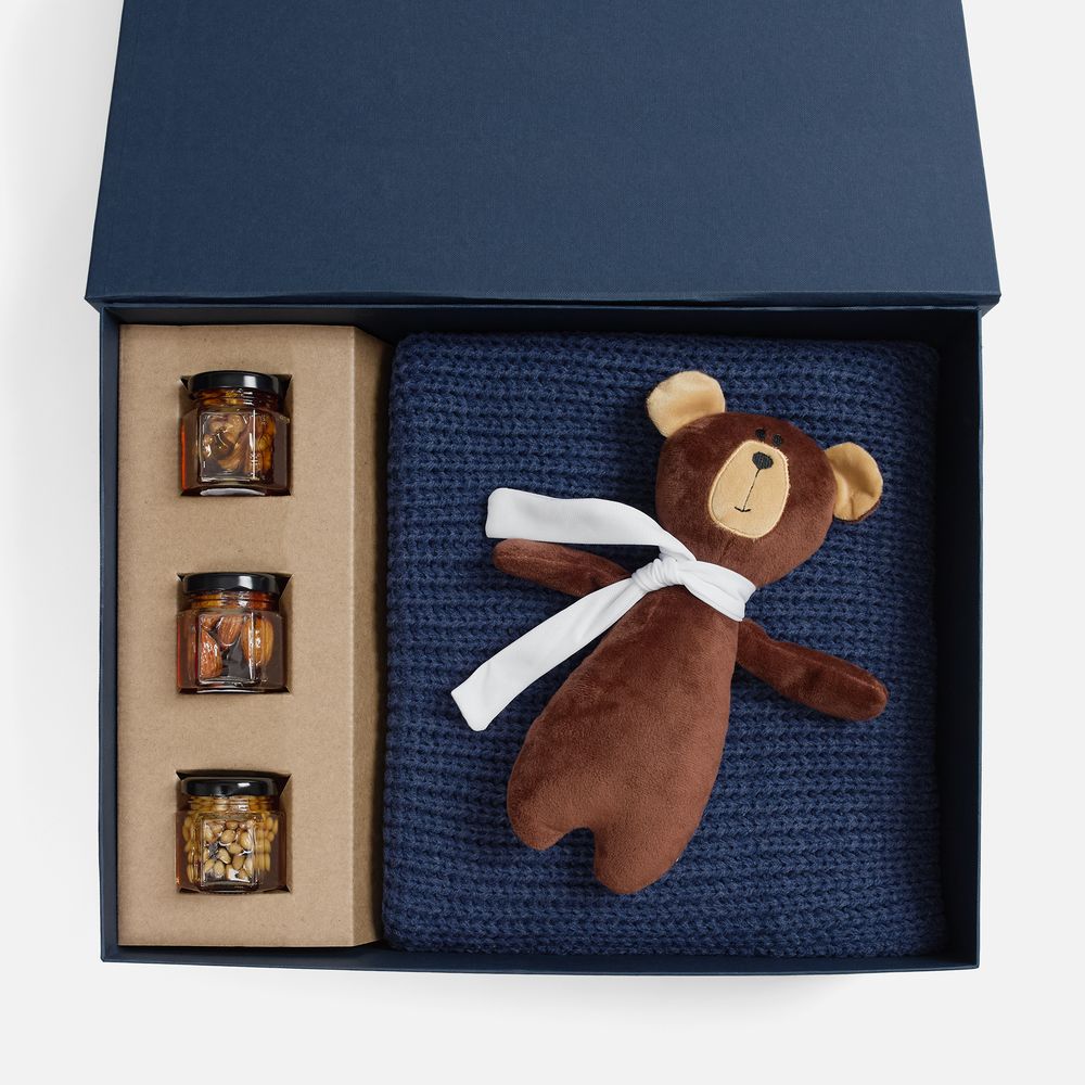 Набор WinterWish легко исполнит главные зимние желания! А именно — быть в тепле, в приятной компании и не забывать радовать себя по мелочам. Милый мишка в шарфике с целой коллекцией разнообразного ароматного меда идеально дополняет основной, более практичный подарок — объемный шарф из толстой пряжи, который впишется в любой зимний образ.