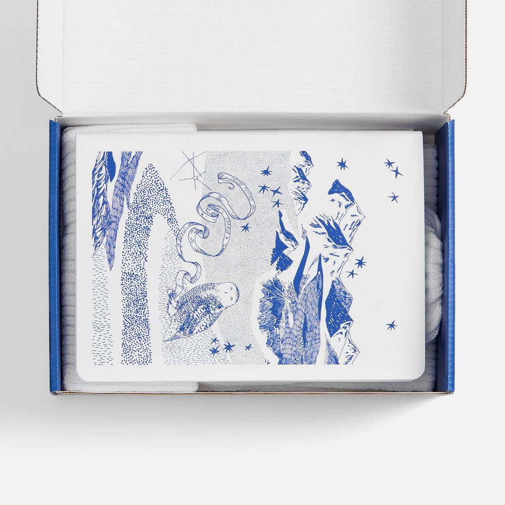 «Неси тепло» — вдохновляющий набор-пожелание, в котором гармонично переплелись магия зимы, дух путешествий и тонкие смысловые акценты. В красочной коробке скрывается маленькая вселенная тепла и вдохновения, приправленная щепоткой волшебства.Подарочная упаковка и блокнот украшены чарующим детализированным изображением с совами на фоне бескрайнего горного пейзажа. Мудрые птицы несут на лентах важные послания с заветами на будущий год, а тончайшие линии выверенного рисунка создают неповторимое полотно северной сказки. Оттеняют магию Севера белоснежные шапка и шарф, которые подарят ощущение чистого зимнего утра и непередаваемого комфорта.«Неси тепло» — это сказка, которую мы создаем сами: в мягких прикосновениях, в дневниковых записях, в образах, что будят воображение. Набор создан для тех, кто во всем ищет скрытые смыслы и источник вдохновения: здесь есть и практичность, и поэзия, и намек на незабываемое приключение, ведь Новый год — это время новых маршрутов и встреч, ярких впечатлений и свершений.«Неси тепло». Красота в деталях.