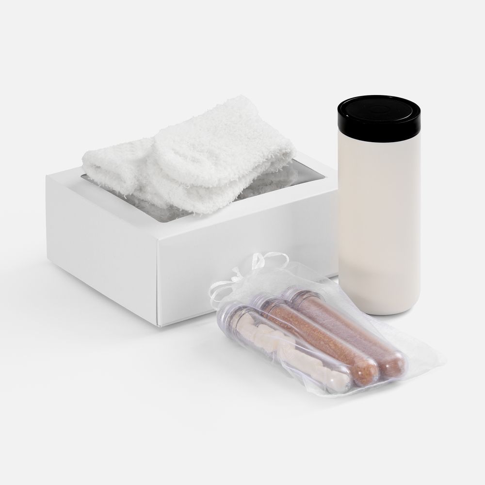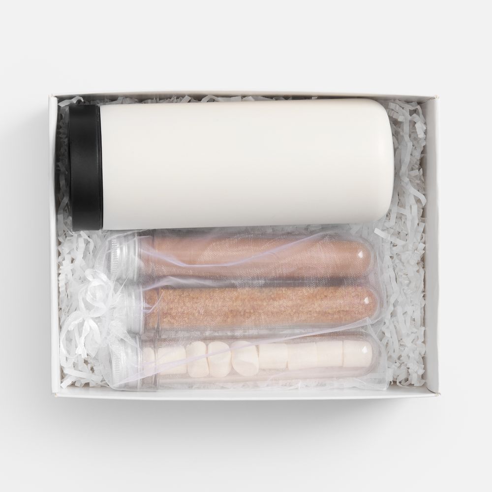 Домашний и такой уютный набор Heimen демонстрирует триумф тепла и комфорта. Чашка ароматного какао с нежными маршмеллоу в стильном термостакане, нежные объятия пушистых носков на ногах — то, что нужно для расслабляющего и умиротворяющего вечера. Набора для приготовления какао хватит на две чашки — можно устроить мини-посиделки или оставить на потом себе, любимому.Heimen. Все уютное просто.