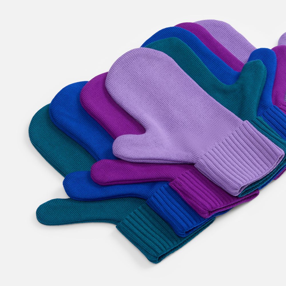 Двухслойные варежки из акриловой пряжи с широким отворотом.Поставляются в пакете с липким краем.