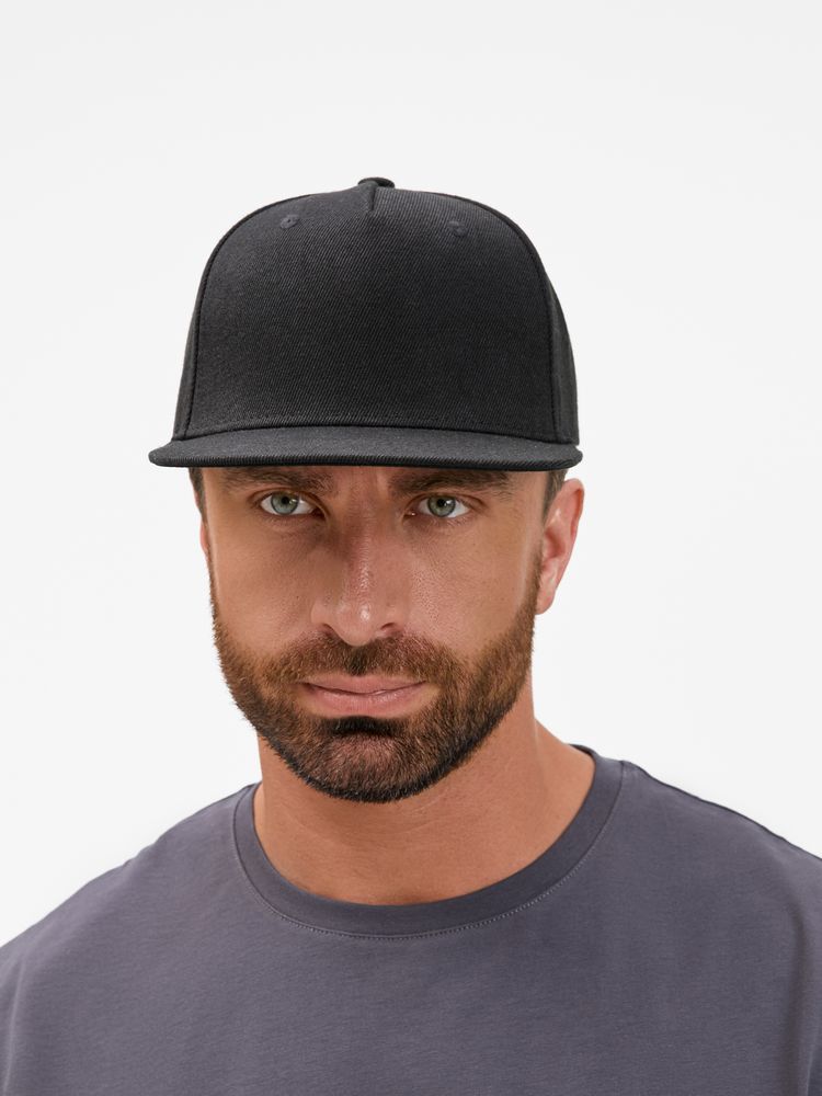 Бейсболка с прямым козырьком из плотного фактурного полиэстера отлично держит форму и не выцветает.Модель с 5 клиньями без шва на лбуОбшивные люверсыРазмер регулируется с помощью пластиковой застежки