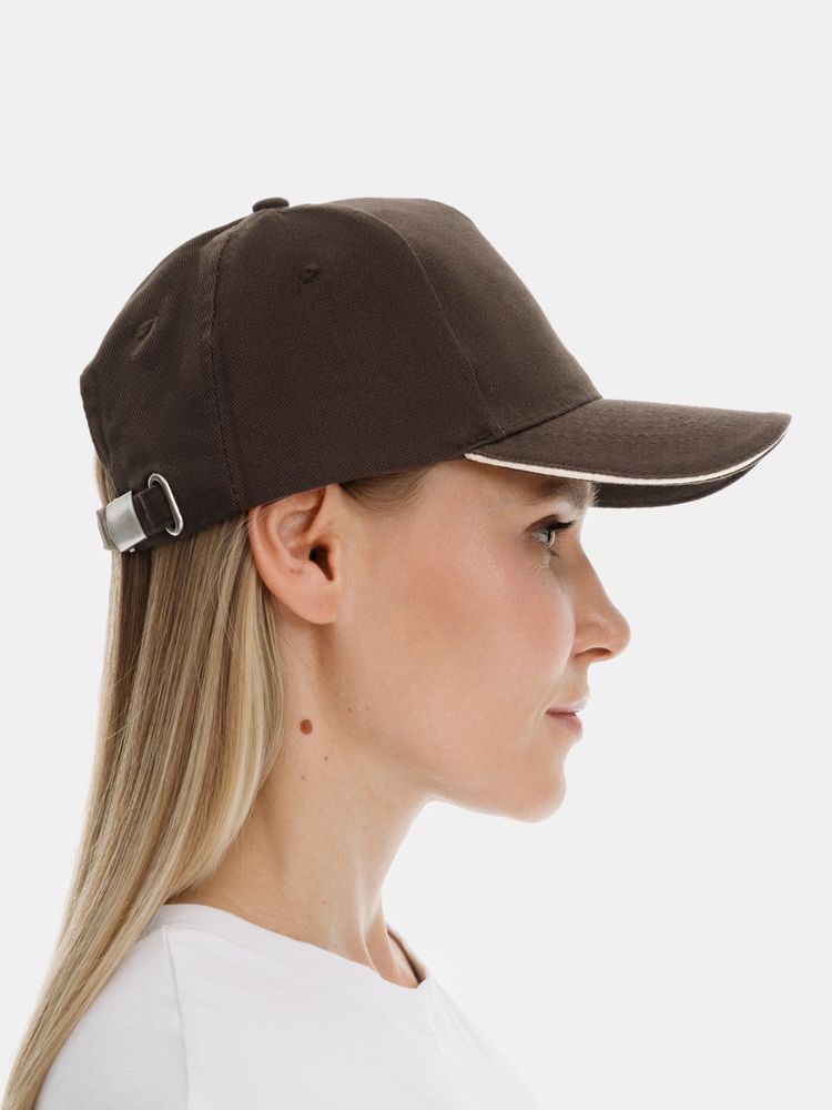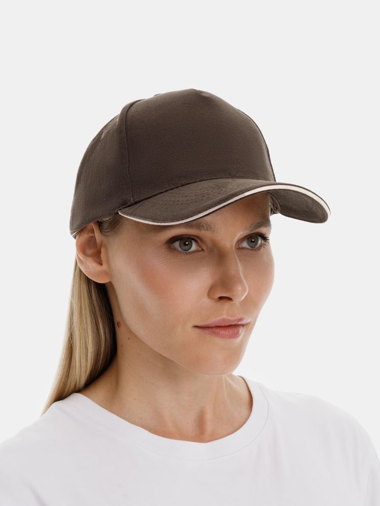 Бейсболка Long Beach, коричневая с бежевым