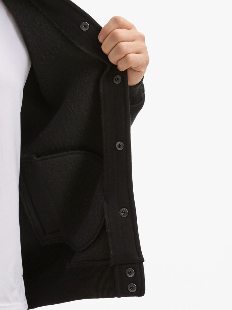 Почувствуйте атмосферу уюта и стиля с нашим бомбером AtmosWear. Мягкий и теплый внутренний слой защитит от холода, а стильный фасон добавит изюминку и привнесет разнообразие в повседневный гардероб. Идеальный для осенних прогулок или вечерних выходов, этот бомбер станет верным спутником в холодное время года. Будьте в тренде в любую погоду!Классический бомбер унисекс на кнопках.Ворот, манжеты и низ изделия отделаны резинкой 2х2Кнопки в тон изделияДва боковых карманаВнутренняя сторона с начесомИзделия с начесом могут оставлять ворс на одежде нижнего слоя.