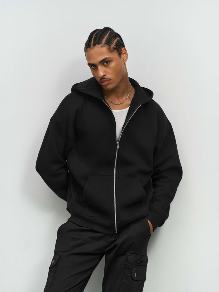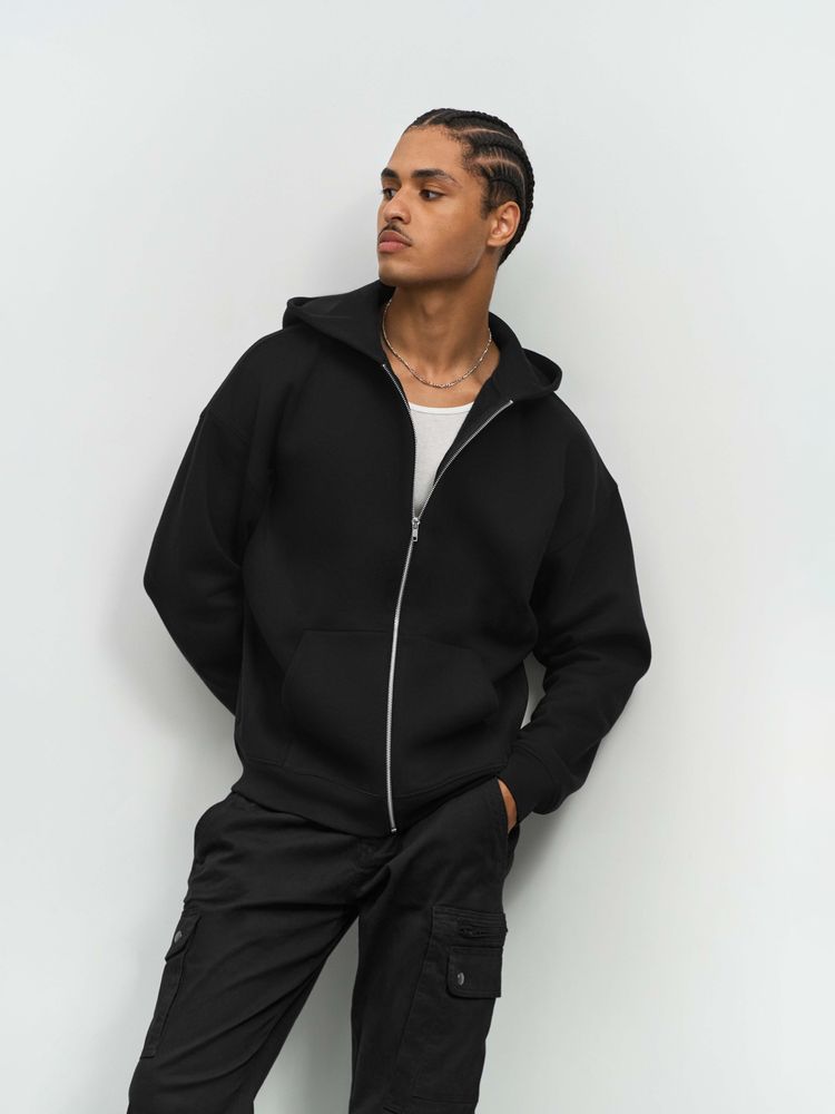 Толстовка на молнии свободной посадки. Благодаря высокой плотности изделие хорошо держит форму, а изнанка с начесом обеспечивает тепло и комфорт.Спущенная линия плечаМанжеты, проймы и низ изделия выполнены резинкой 2х2Два передних карманаМеталлическая молния YKKУкрепляющая тесьма по вороту изнутриОтрывной ярлык в горловинеВнутренняя сторона с начесом Толстовки с начесом могут оставлять ворс на одежде нижнего слоя.