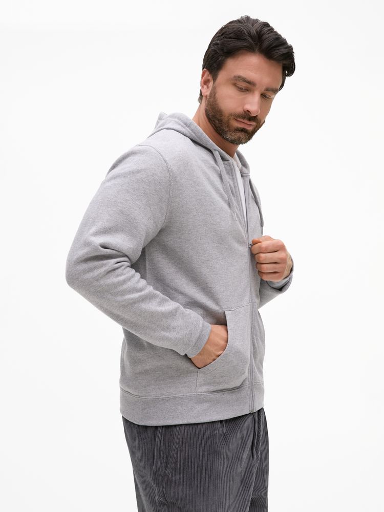 Толстовка без боковых швов на молнии с капюшоном. Манжеты и низ изделия в резинкуДва передних карманаКапюшон со сменным вшитым шнурком (130 см) тон в тонВнутренняя сторона с начесомТолстовки с начесом могут оставлять ворс на одежде нижнего слоя.