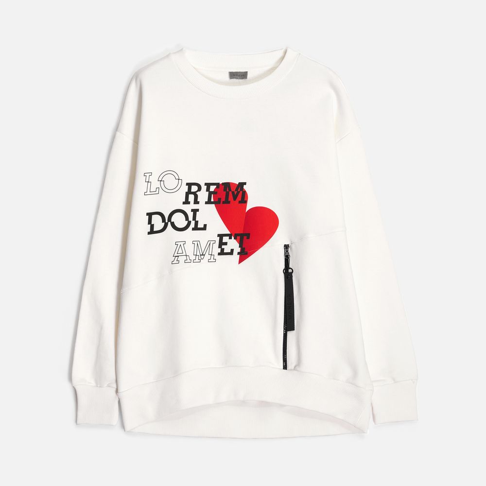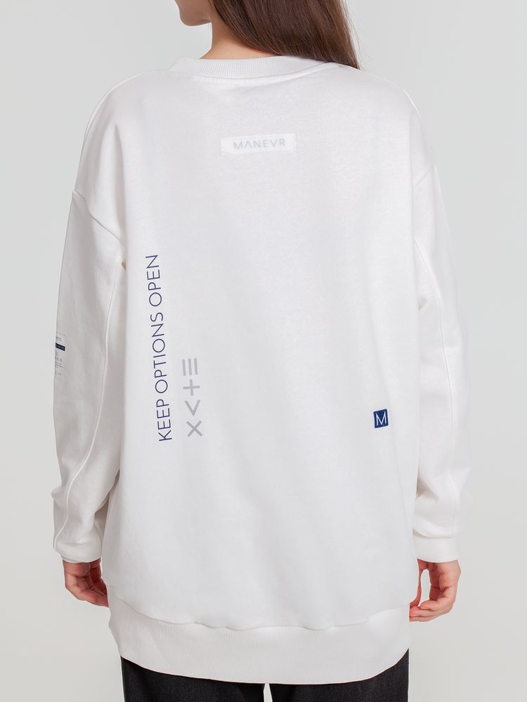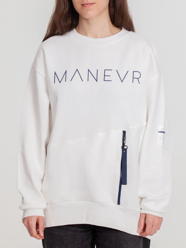 Свитшот унисекс свободного кроя со спущенным плечом. Внутренняя сторона без начеса.Нестандартный передний карман на молнии, размер 25х37 смУдлиненная спинкаВорот, манжеты и низ изделия выполнены резинкойУкрепляющая тесьма по вороту