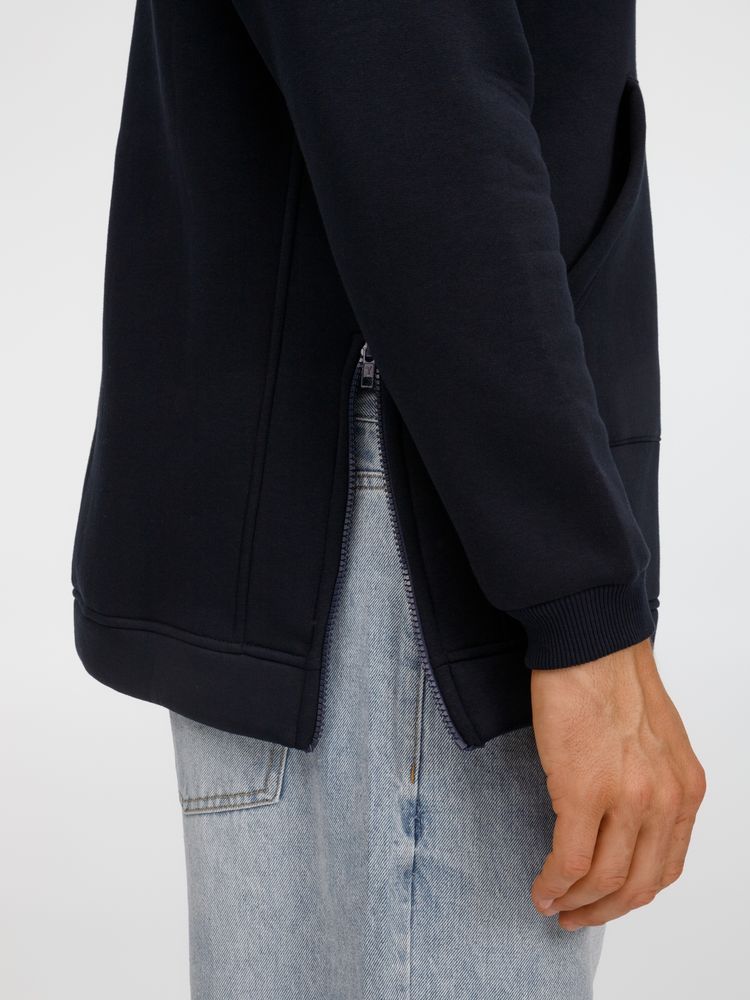 Худи унисекс удлиненного силуэта с молниями в боковых швах.Рукав-регланКарман-кенгуруКапюшон с подкладкой из основного полотнаМанжеты и низ изделия из рибаныВнутренняя сторона с начесомТолстовки с начесом могут оставлять ворс на одежде нижнего слоя.