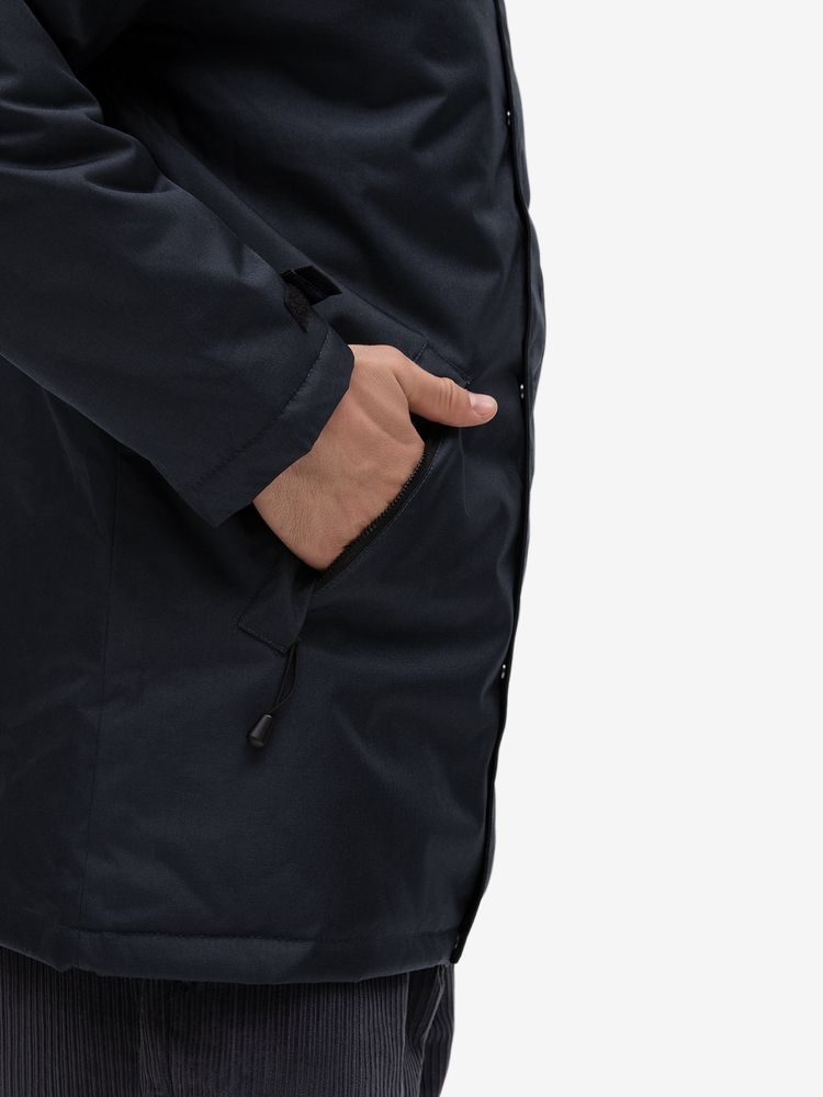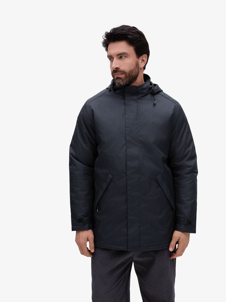 Парка унисекс на стеганой подкладке.Застежка-молния с двумя замками и планкой на липучках и скрытых кнопкахВоротник-стока с флисовой изнанкойКапюшон с утягивающими шнурами, складывается и убирается в воротникДва внешних кармана на молнии, один внутреннийРегулируемые манжеты на липучкахВыполнена из ткани с водоотталкивающей пропиткойДля удобства нанесения логотипа по низу спинки со стороны подкладки имеется техническая молния