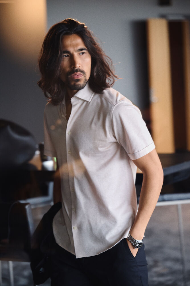 <p>This Limited Edition short sleeved shirt is crafted in a comfortable knitted fabric. It features our signature soft modern cut away hidden button down collar, side splits and fold up sleeves for a sophisticated look. Available in Tailored Fit, that falls between our Slim Fit and Regular Fit. It has siblings in the same fabric: Indigo Bow 133 S/S Polo and Indigo Bow 133 Shirt Dress.</p> <p> </p> <p>Colors: 112 sand, 115 skyblue, 155 navy</p> <p>61% cotton 20% recycled polyester 19% linen</p> <p>146 g/m²</p> <p>XS-4XL</p> <p> </p> <p> </p>