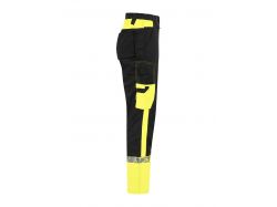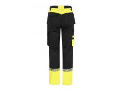<p>Workpant with open side pockets and back pockets with extra widht, left side with flap and magnetic closure. Pre-bent knees, stretch fabric in croatch and sewn-in stretch band in the waist for increased comfort. Leg pockets, on left side pocket with flap and magnet closure, internal phone pocket and bracket for ID-card. On the right side pocket for folding rule and pocket for tools with knife button. Knee protection pockets, opening from the outside with zipper. Wider belt loop at the back to prevent pressure from belt. Hidden button at front. Reinforcement in the folding rule pocket, back pockets and over knees for increased durability. </p> <p>EN 17353 Class B2, VIZ black/yellow-9910 Class AB2, EN 14404 together with kneepad 9056</p> <p> </p> <p>Tested for industrial washing according to ISO 15797</p> <p>Increased visibility EN 17353 </p> <p>Supplied in a bio-based, compostable bag</p> <p> </p> <p>Material: 63% recycled polyester, 35% organic cotton, 2% spandex - 245 g/m2 Fabric 2: 100% recycled polyamide Fabric 3: 90% recycled polyamide, 10% spandex </p> <p>245 g/m²</p>