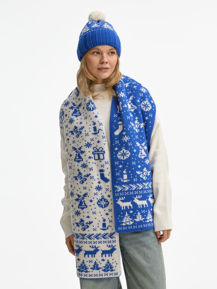 Шарф Holidale выполнен из высокообъемной полушерстяной пряжи, которая дарит тепло и ощущение праздничного уюта. Изысканный жаккардовый узор в традиционных зимних цветах, контрастные сочетания и объемная текстура подчеркивают праздничный характер аксессуара.Этот шарф станет не просто согревающим дополнением к зимнему гардеробу, но и настоящим новогодним подарком, который несет в себе тепло и радость. Яркий, выразительный и невероятно уютный — он поможет создать праздничное настроение даже в самый хмурый зимний день.Поставляется в пакете с липким краем.