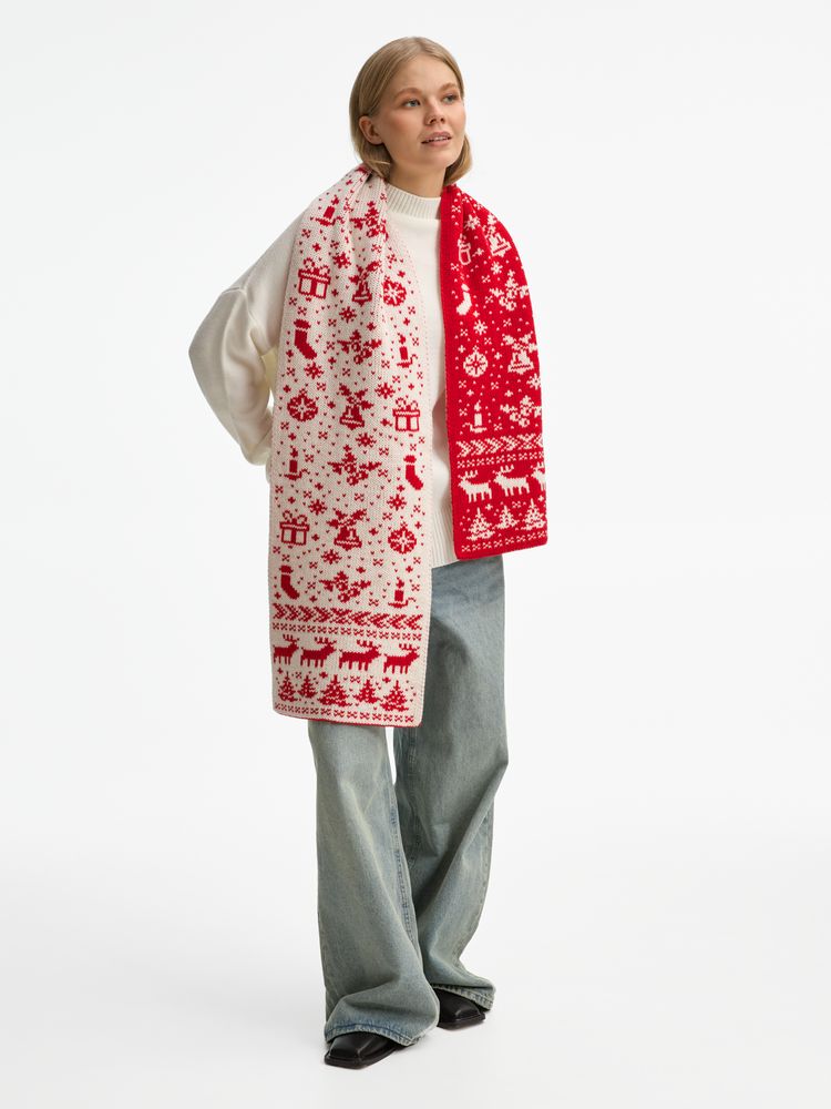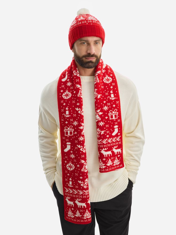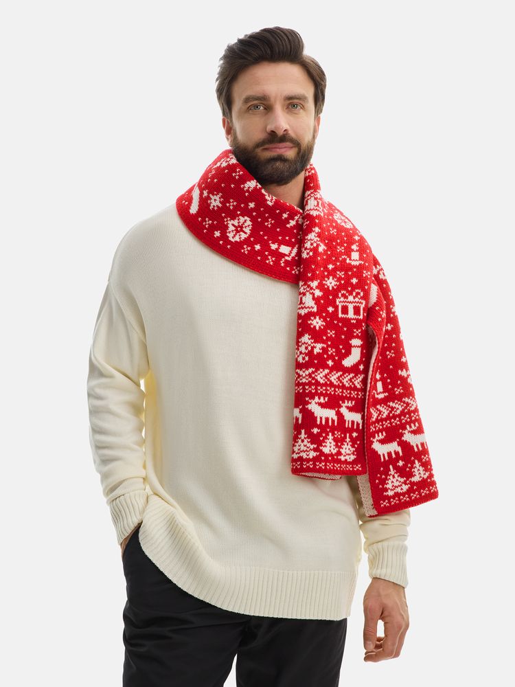 Шарф Holidale выполнен из высокообъемной полушерстяной пряжи, которая дарит тепло и ощущение праздничного уюта. Изысканный жаккардовый узор в традиционных зимних цветах, контрастные сочетания и объемная текстура подчеркивают праздничный характер аксессуара.Этот шарф станет не просто согревающим дополнением к зимнему гардеробу, но и настоящим новогодним подарком, который несет в себе тепло и радость. Яркий, выразительный и невероятно уютный — он поможет создать праздничное настроение даже в самый хмурый зимний день.Поставляется в пакете с липким краем.