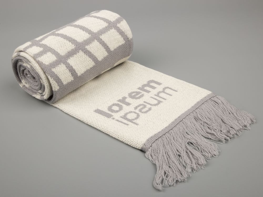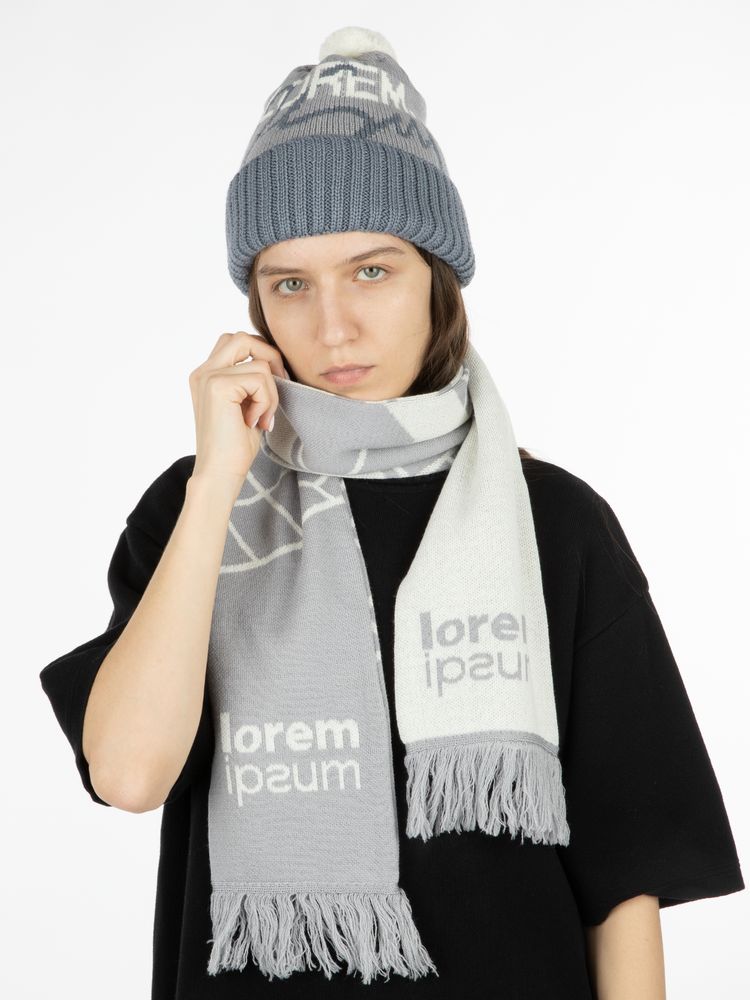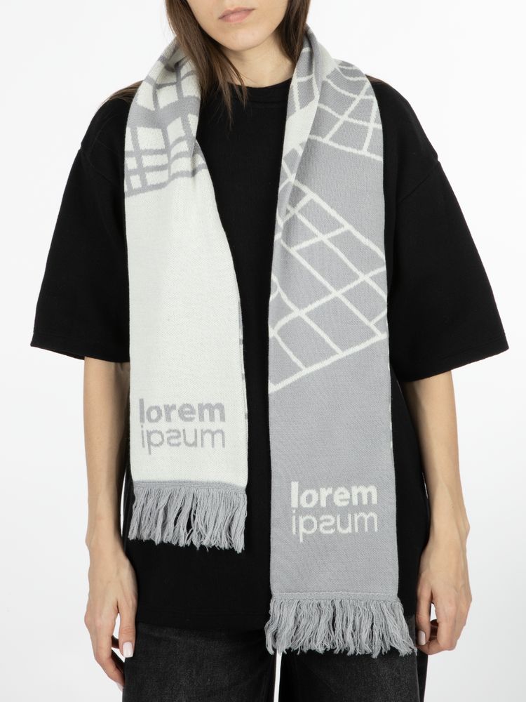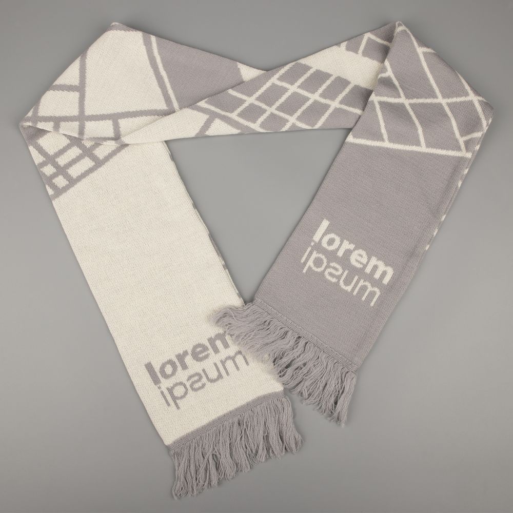 Шарф с вывязанным логотипом и индивидуальным рисунком в фирменной цветовой гамме.Модель: классический двуслойный шарф с жаккардовым узором в 2-3 цвета. Такой шарф вяжется сплошным полотном, затем его складывают пополам и сшивают. Шарф получается двойной, обе его стороны лицевые, что позволяет вывязывать на разных сторонах разные узоры, изнанка не видна. Цвет: выберите цветовое решение по таблице «Актуальные цвета нитей» (на фото). Особенности переплетения: темная нить просвечивает сквозь светлую, не рекомендуем светлый фон. Дополнительные опции: бахрома 7 см с каждой стороны, края шарфа под бахромой не сшиваются (можно добавить через опцию «Добавить нанесение»).Отправляя запрос, укажите в поле «Примечание» формы заказа следующие данные.Цвета изделия по таблице актуальных цветов (оптимально 2-3 цвета). Цвета бахромы (если применимо, не более 4).Приложите к заказу оригинал-макет, выполненный в конструкторе.Этапы изготовления заказа1. Перед запуском заказа вы согласуете тираж, сроки, наличие пряжи, присылаете оригинал-макет в векторном формате.2. Мы запускаем заказ в работу, переводим макет в комбинацию цветных петель, утверждаем созданный программой рисунок в петлях и вяжем тираж.3. Принимаем готовый заказ на склад, проверяем, упаковываем и передаем в доставку.С 10 января по 30 сентября включительно вы можете заказать изготовление сигнального образца. Стоимость образца 5 000 рублей.