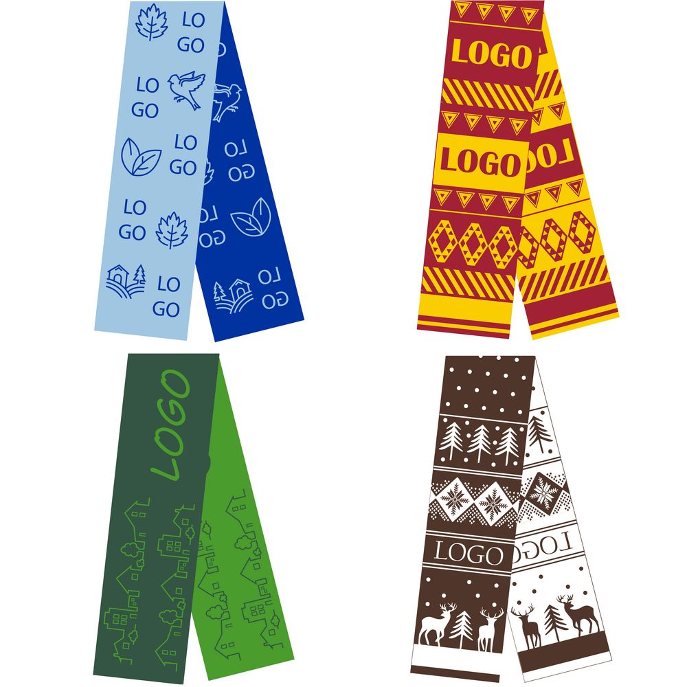 Шарф с вывязанным логотипом и индивидуальным рисунком в фирменной цветовой гамме.Модель: облегченный шарф с жаккардовым узором в 2-3 цвета. Самый популярный вариант — вязание в 2 цвета — позволяет получить на изнанке зеркальное отображение рисунка с лицевой стороны и инверсию цветов. Модель не имеет швов, вяжется единым полотном. Имеет лицевую и изнаночную сторону. Цвет: выберите цветовое решение по таблице «Актуальные цвета нитей» (на фото).Отправляя запрос, укажите в поле «Примечание» формы заказа следующие данные.Цвета изделия по таблице актуальных цветов (оптимально 2-3 цвета).Приложите к заказу оригинал-макет, выполненный в конструкторе.Этапы изготовления заказа1. Перед запуском заказа вы согласуете тираж, сроки, наличие пряжи, присылаете оригинал-макет в векторном формате.2. Мы запускаем заказ в работу, переводим макет в комбинацию цветных петель, утверждаем созданный программой рисунок в петлях и вяжем тираж.3. Принимаем готовый заказ на склад, проверяем, упаковываем и передаем в доставку.С 10 января по 30 сентября включительно вы можете заказать изготовление сигнального образца. Стоимость образца 5 000 рублей.