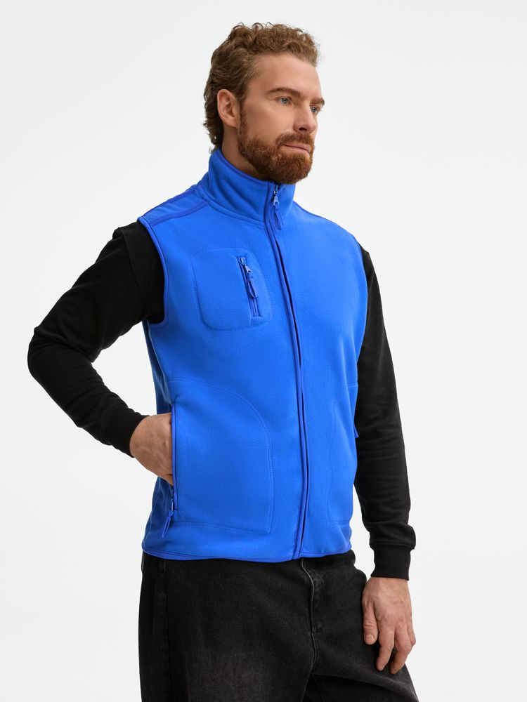Флисовый жилет унисекс на молнии выполнен из материала повышенной плотности. Благодаря лазерному крою short cut жилет имеет отличную посадку, а дополнительная обработка против катышков позволяет материалу долго оставаться в первоначальном виде. Воротник стойкаУкрепляющая тесьма по воротуКарманы на молнии: два боковых, один нагрудныйЭластичная бейка по вороту, на проймах и по низу изделия