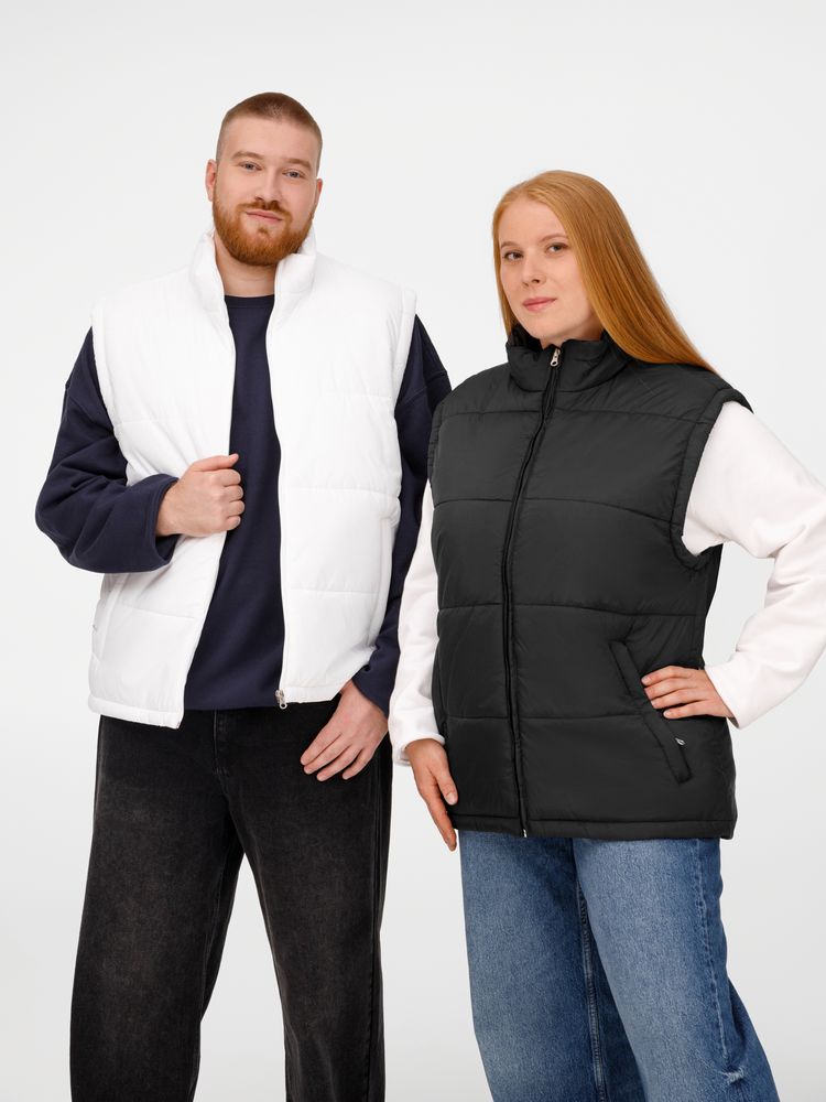 Утепленный жилет унисекс. Воротник-стойкаЭргономичная линия низа - удлинение на спинкуДва наружных кармана на молнии и один внутренний на липучкеЗастежка-молния в тон жилетаДля удобства нанесения логотипа по низу спинки со стороны подкладки имеется техническая молнияРассчитана на температуру до +10 °С