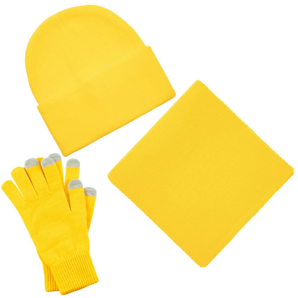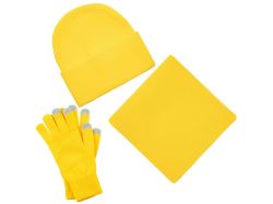 В комплект входят двухслойная шапка с регулируемым отворотом и легкий однослойный шарф из мягкой акриловой пряжи, сохраняющие тепло и защищающие от ветра, а также эргономичные перчатки со специальными токопроводящими волокнами на кончиках пальцев, позволяющие свободно пользоваться смартфоном даже в холодную погоду. Универсальная цветовая гамма и лаконичный дизайн делают набор органичным дополнением к любой верхней одежде. Набор поставляется в коробке с возможностью полной запечатки — идеальное решение для корпоративных подарков и промоакций.