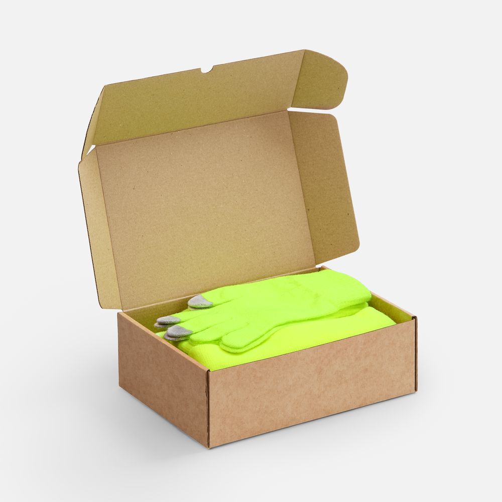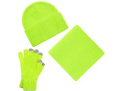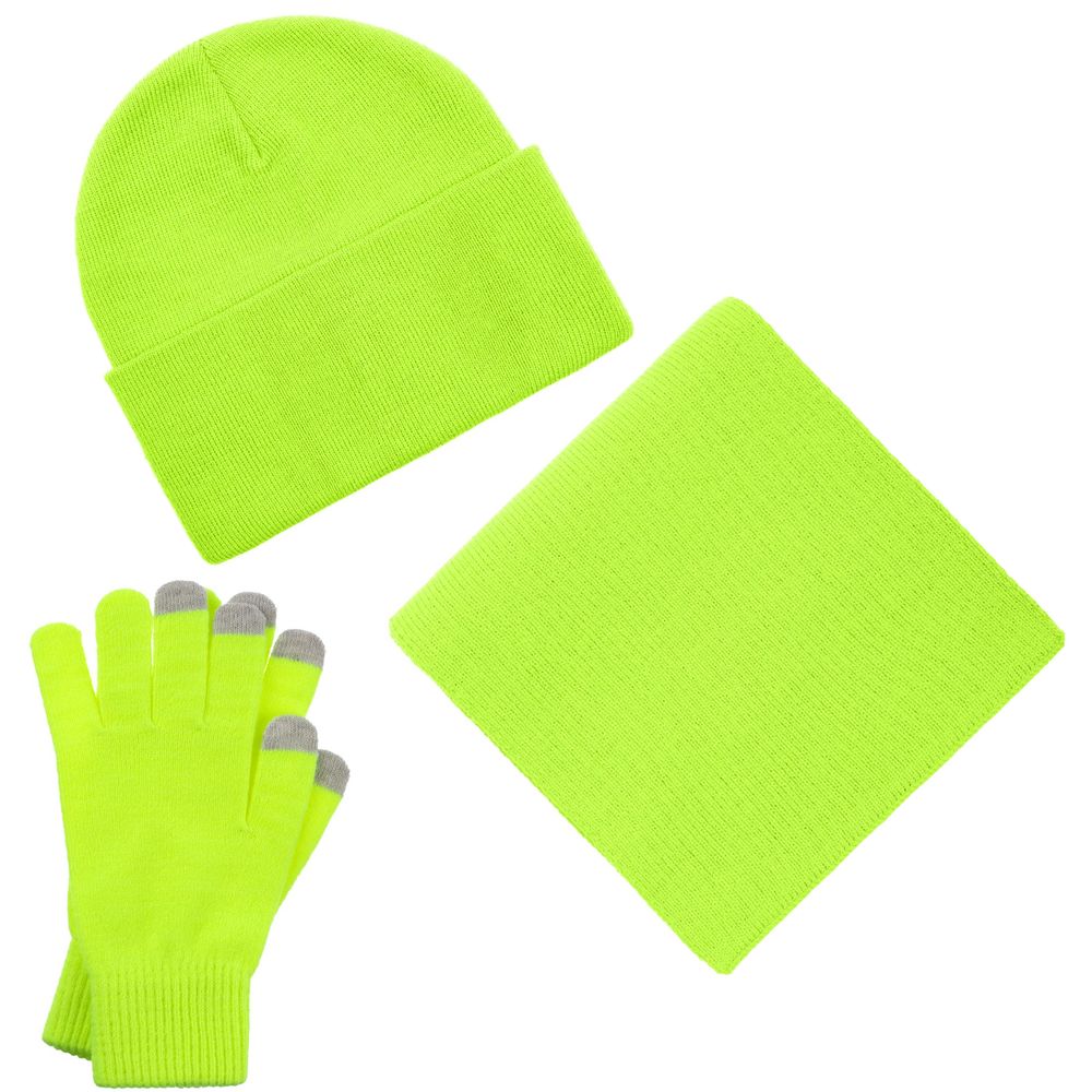 В комплект входят двухслойная шапка с регулируемым отворотом и легкий однослойный шарф из мягкой акриловой пряжи, сохраняющие тепло и защищающие от ветра, а также эргономичные перчатки со специальными токопроводящими волокнами на кончиках пальцев, позволяющие свободно пользоваться смартфоном даже в холодную погоду. Универсальная цветовая гамма и лаконичный дизайн делают набор органичным дополнением к любой верхней одежде. Набор поставляется в коробке с возможностью полной запечатки — идеальное решение для корпоративных подарков и промоакций.
