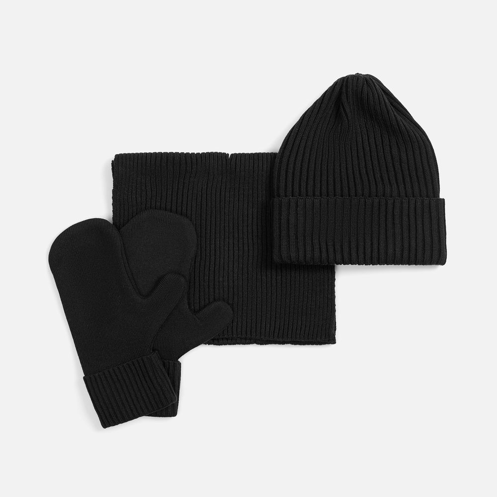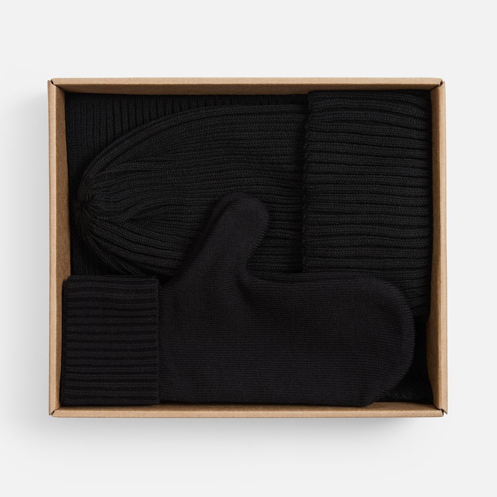 Набор Yong из трех предметов для максимального тепла и комфорта в холодное время года. В набор входит удобный шарф с технологичным отверстием для быстрого завязывания, шапка с двойным отворотом и теплые двухслойные варежки с широкой манжетой. Все изделия связаны из акриловой пряжи, отличаются практичностью и элегантной простотой. Набор упакован в подарочную картонную коробку.