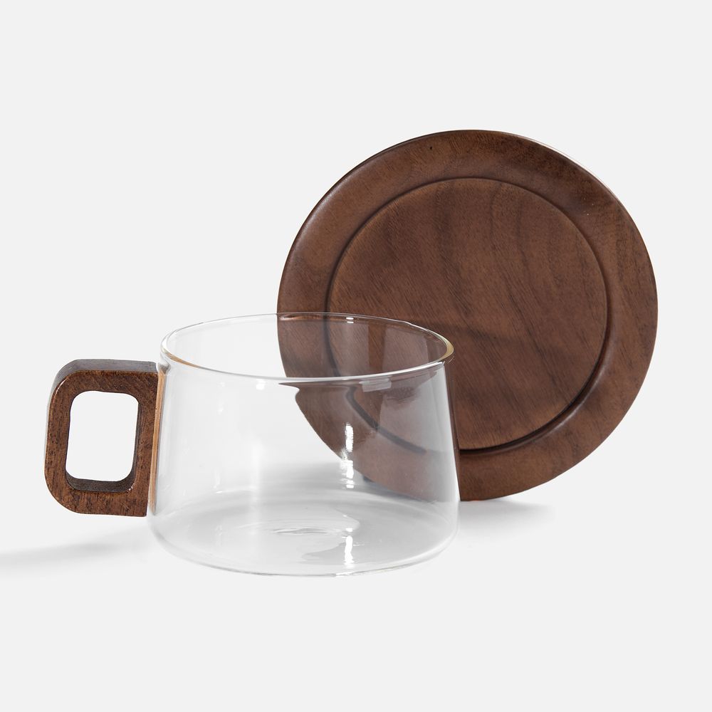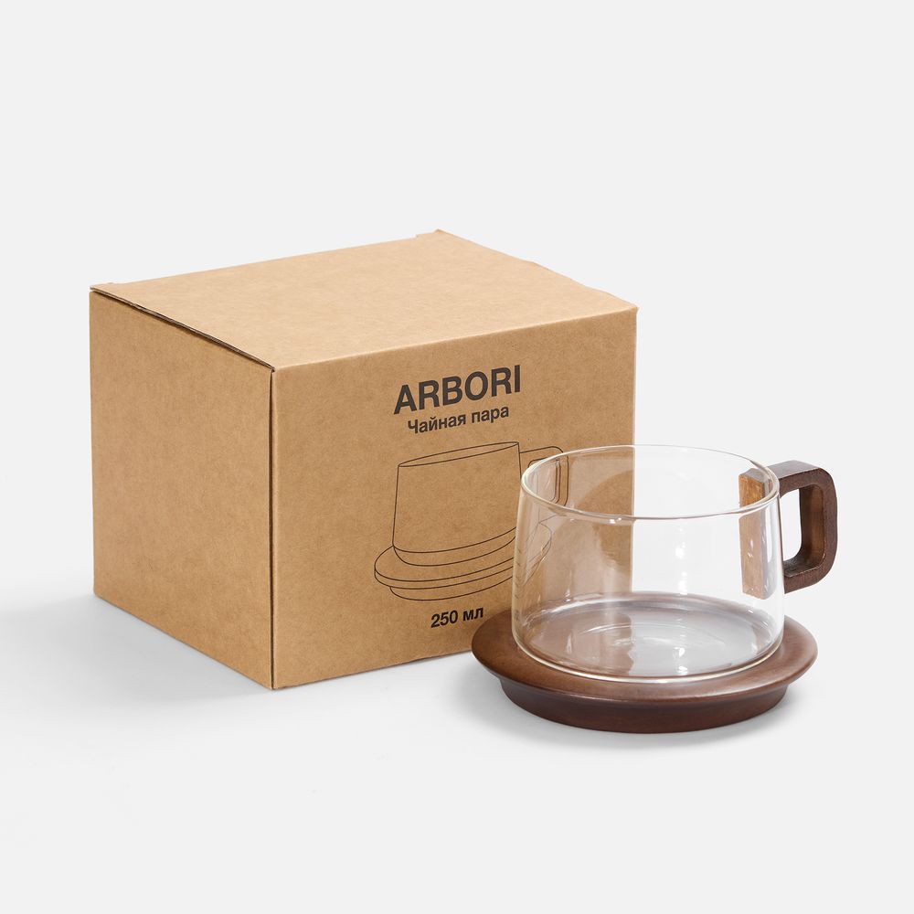 Чайная пара Arbori с чашкой из прочного боросиликатного стекла в сочетании с элементами из ореха станет изюминкой домашней или офисной подачи горячих напитков. Прозрачное стекло подчеркивает цвет чая, кофе или травяного сбора, удобная деревянная ручка не нагревается и комфортно лежит в руке, а подставка-блюдце защищает стол от капель и добавляет эстетики.Чайная пара Arbori — лаконичная эстетика в обрамлении уютных природных материалов.Емкость 250 мл.Поставляется в индивидуальной транспортной коробке.