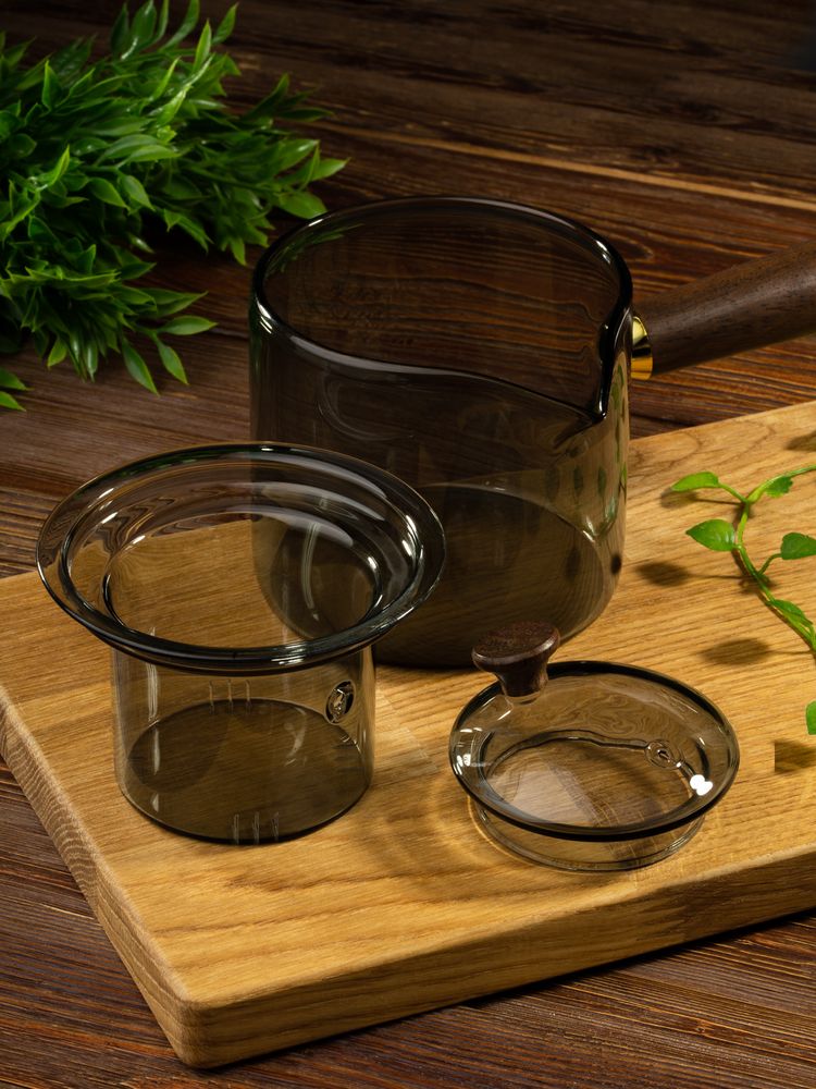 Проводник в мир спокойствия — чайник-ковш Hazy. Его мягкие линии, приглушенные цвета, стильная комбинация стекла и дерева создают атмосферу туманного утра, когда хочется укутаться в плед и насладиться чашкой горячего чая. Стеклянное сито с узкими прорезями поможет заварить чистый чай без чаинок, а эргономичная ручка — с удобством использовать чайник, не боясь обжечься.Hazy. Для моментов умиротворения.Поставляется в индивидуальной транспортной коробке. Емкость 500 мл.
